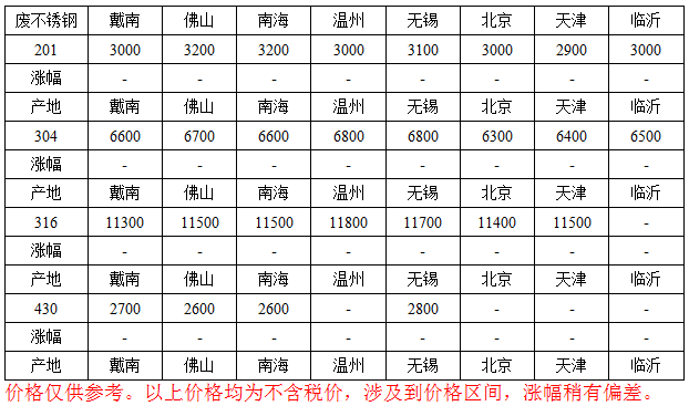 【200系列】200系列行情暫穩(wěn)運行:201無錫報價為3000-3200元/噸,戴南價格 2900-3100元/噸,佛山3100-3200元/噸。202:無錫價格4800-5100元/噸,戴南5100-5500元/噸,佛山 4800-5200元/噸。201成交一般。