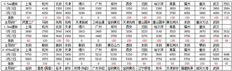 全國鍍鋅彩涂市場周評(3.18-3.25)